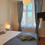 The apartment has a fully furnished kitchen along with a fridge, an oven, and kitchenware. Tu'gether and Po Drodze can be reached within a walking distance of 5 minutes. Gdansk Lech Walesa airport is a 30-minute ride away.