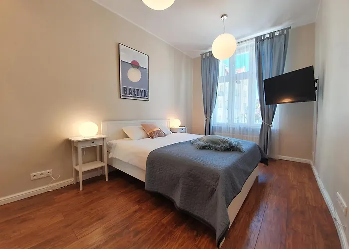 Apartament Na Monte Cassino 42 Sopot o powierzchni 45 m² jest usytuowany prawie 5 min piechotą od Państwowej Galerii Sztuki i wychodzi na ulicę. Park rozrywki Kolibki i Park Prezydenta Ronalda Reagana znajdują się odpowiednio w odległości 3 km i 3,1 km od tego apartamentu.